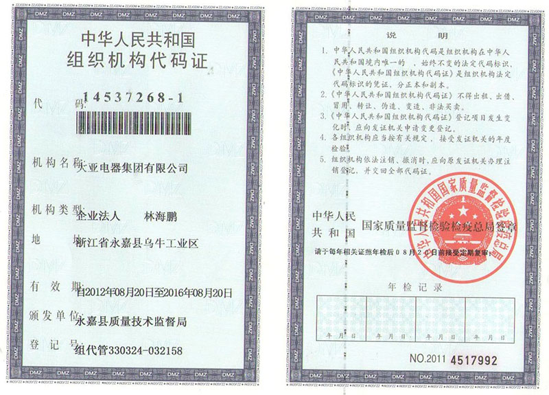 Certificate-page 1-Daya Electric Appliance Group Co., Ltd